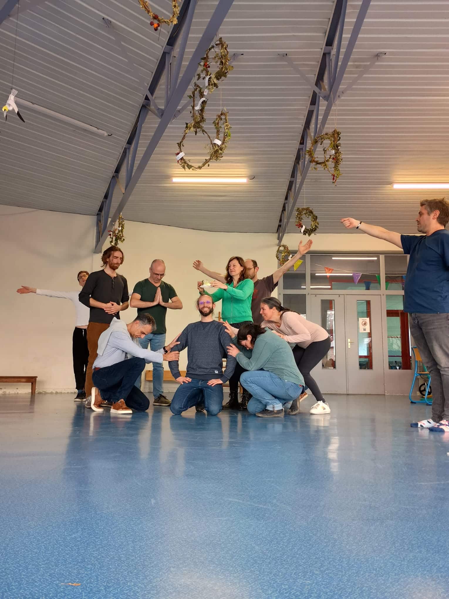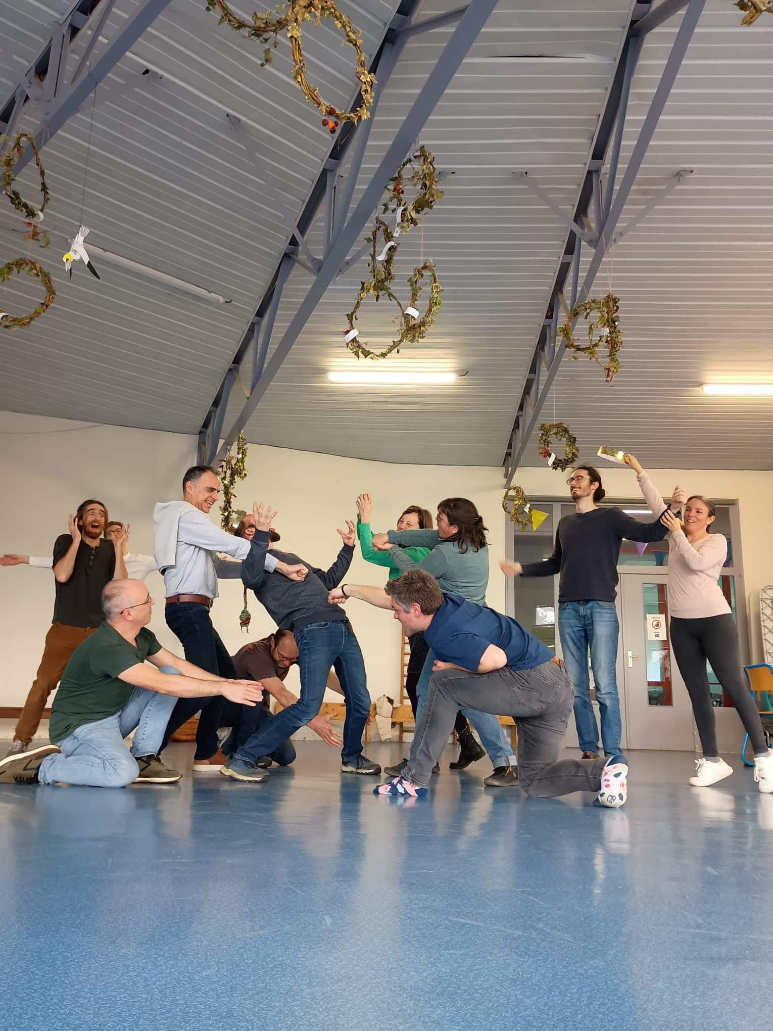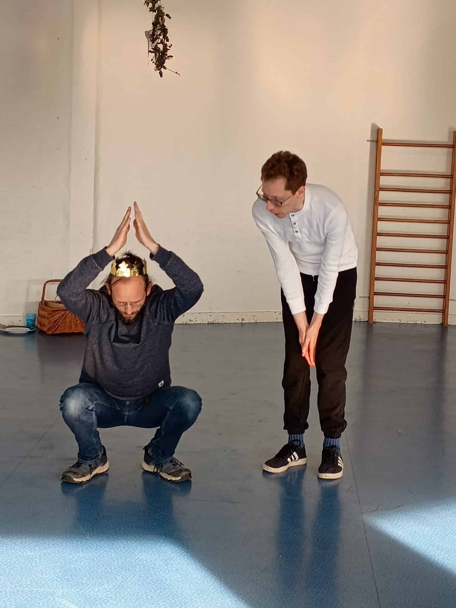les ImproLocos ont Sacré le roi Marcus et son Dauphin Brendan lors du stage « Faire des liens » animé par Amaury et Marine.